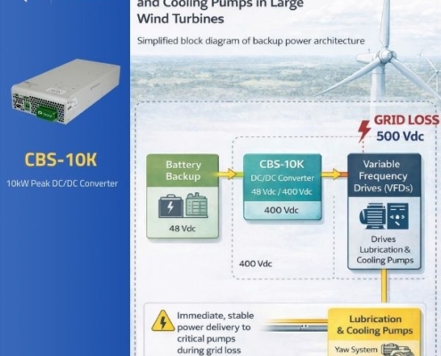 Ensuring critical lubrication and protect high-value mechanical assets in wind turbines during grid-out scenarios with a CBS-10K DC/DC–based approach.